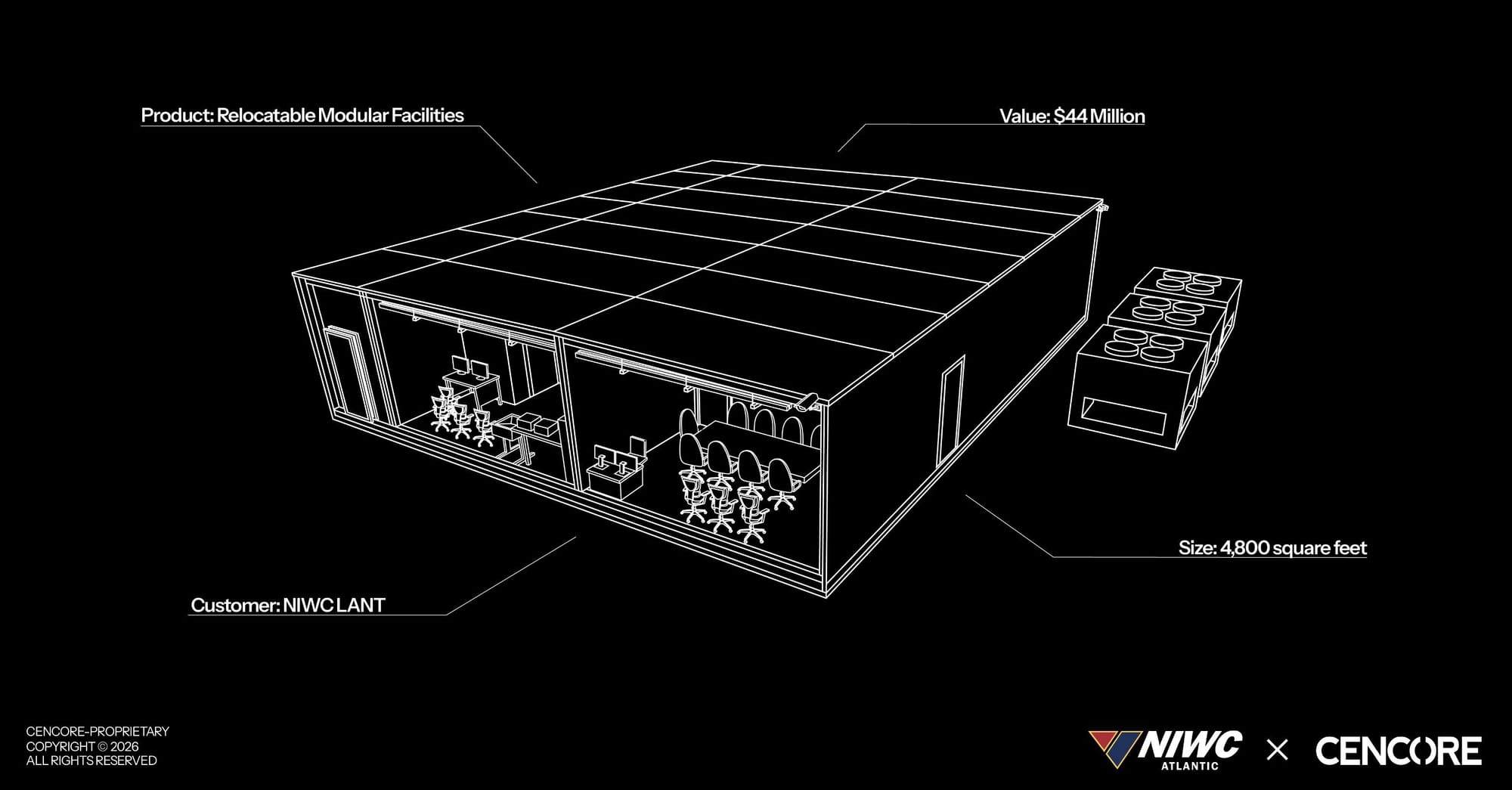 In its 18 February 2026 announcement, CenCore said the contract calls for “up to eight” single-story facilities, about 4,800 square feet each, installed on pre-existing concrete pads at NIWC Atlantic sites in the greater Charleston, South Carolina area.