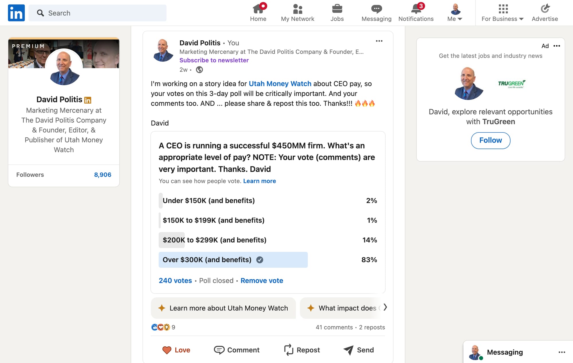 I'm working on a story idea for Utah Money Watch about CEO pay, so your votes on this 3-day poll will be critically important. And your comments too. AND ... please share & repost this too. Thanks!!! 🔥🔥🔥David