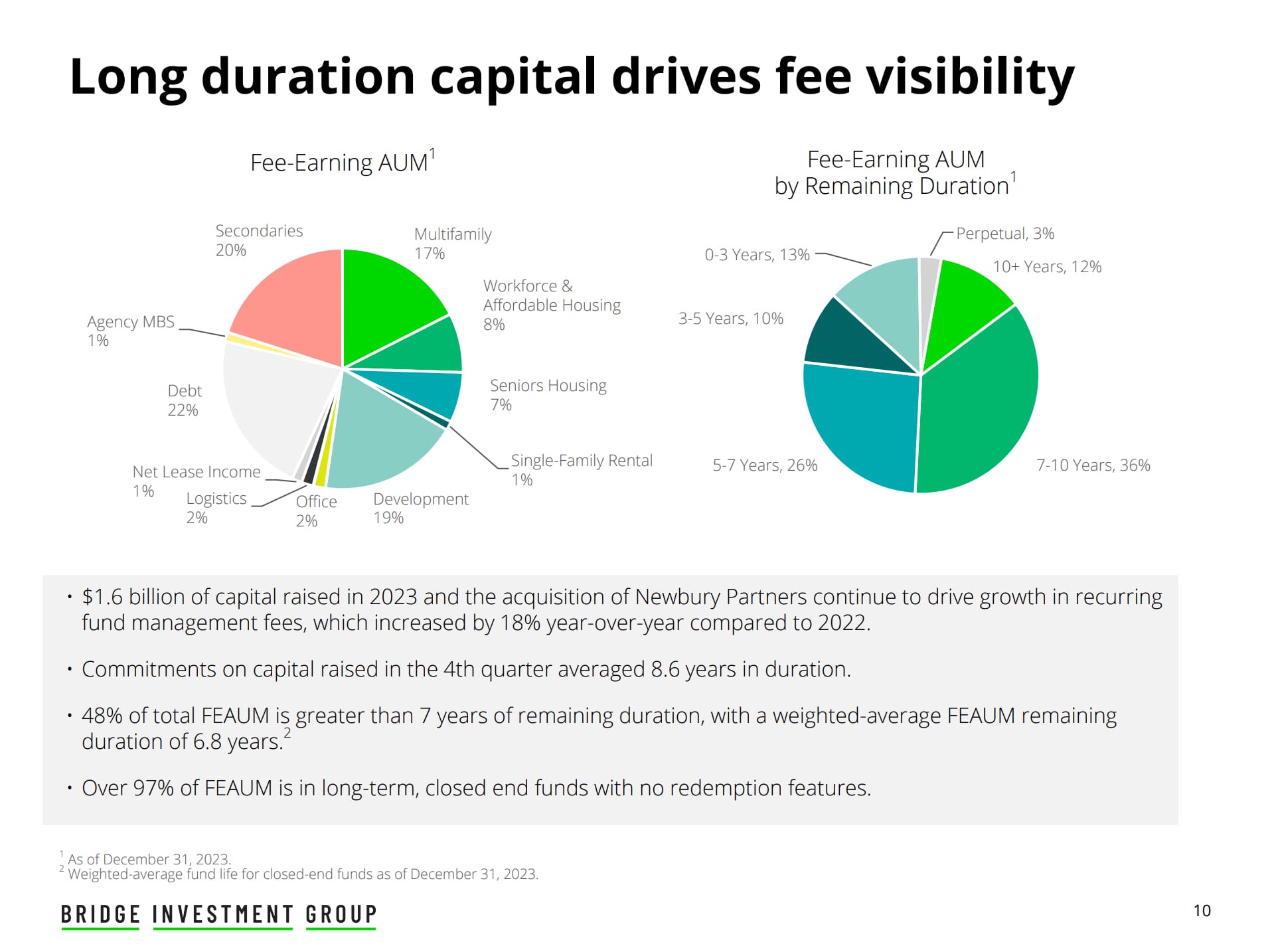 During 2023 (the last full year data is available), Bridge's Fee-Earning real estate AUM was derived from