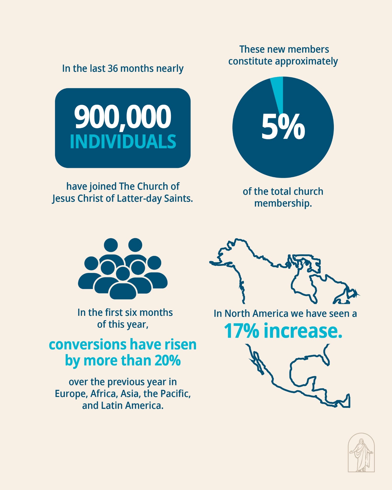 - The LDS Church gained nearly 900,000 new members during the past 36 months, with