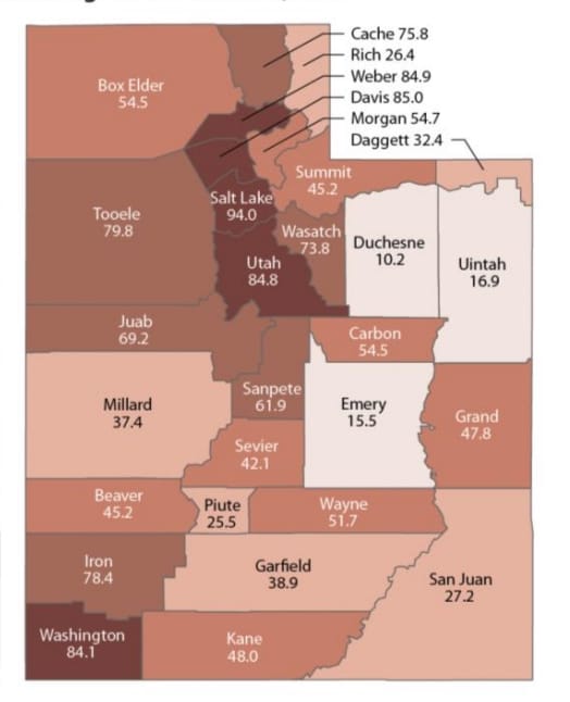 - Utah County at 84.8; and