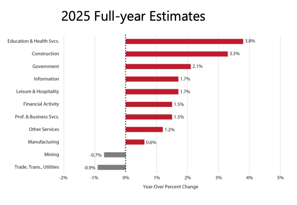 THREE: 2025 Estimated Job Growth in Utah was Up in 9 of 11 Industries, Highlighted by the Education/Health Services and Construction Sectors