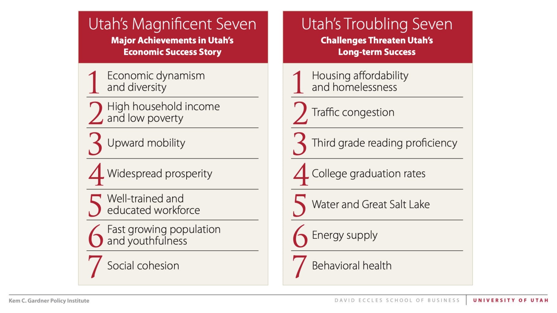 SEVEN: Utah's "Magnificent Seven" and "Troubling Seven" as Defined by the Chamber and the Institute